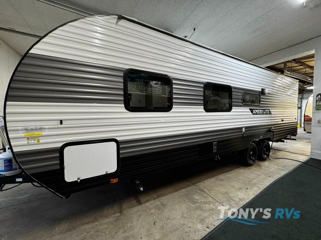 The Ameri-Lite Ultra Lite travel trailers by Gulf Stream are lightweight and economical, perfect for first time RVers! You will find solid construction, full bath and kitchen amenities, plus comfortable seating and sleeping spaces. There are also plenty of storage spaces for personal belongings, camp gear, food, and more!
