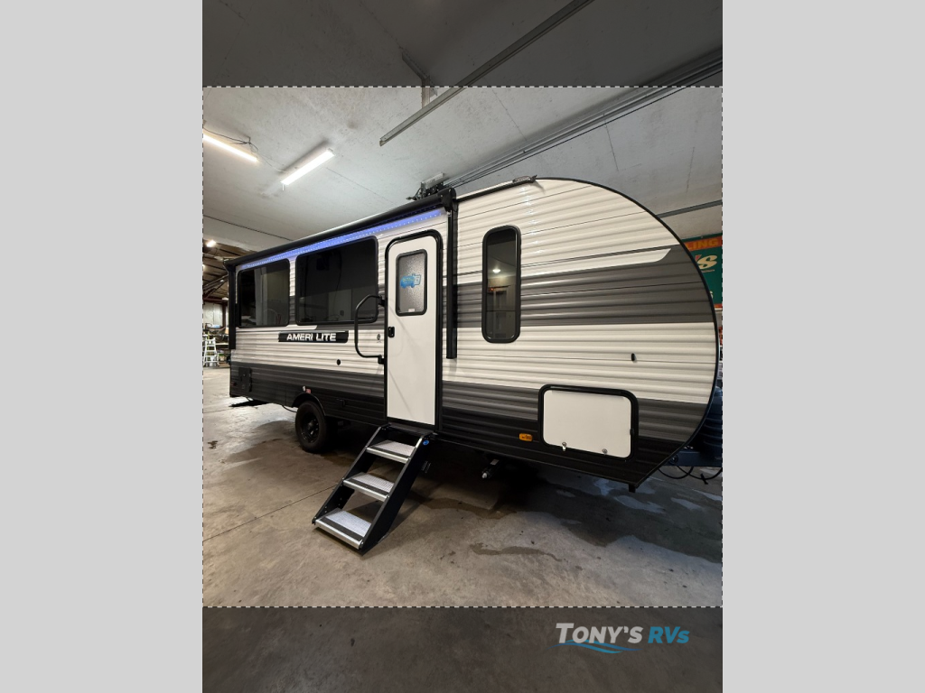 The Ameri-Lite Ultra Lite travel trailers by Gulf Stream are the perfect RV for families wanting to start their camping lifestyle, but not break the bank. These lightweight units are built with a diamond plate lower front, a one-piece synthetic vinyl roof, and a uni-body construction with steel hurricane straps tying the walls to the floor for added durability. The front power hitch jack and four stabilizer jacks will make set-up hassle-free once you arrive at the campground, and you can put out the electric awning to rest in the shade when you're done. Each model includes convenient amenities, like the 13,500 BTU A/C, the tankless water heater, a central control panel, and multiple USB ports for your tablet, phone, and camera! The inside is designed to make you feel at home with radiant LED lighting, designer kitchen backsplash, pleated privacy shades, craft-made cabinetry, plus many more features. Start your RV lifestyle with an affordable, lightweight Ameri-Lite Ultra Lite travel trailer today!