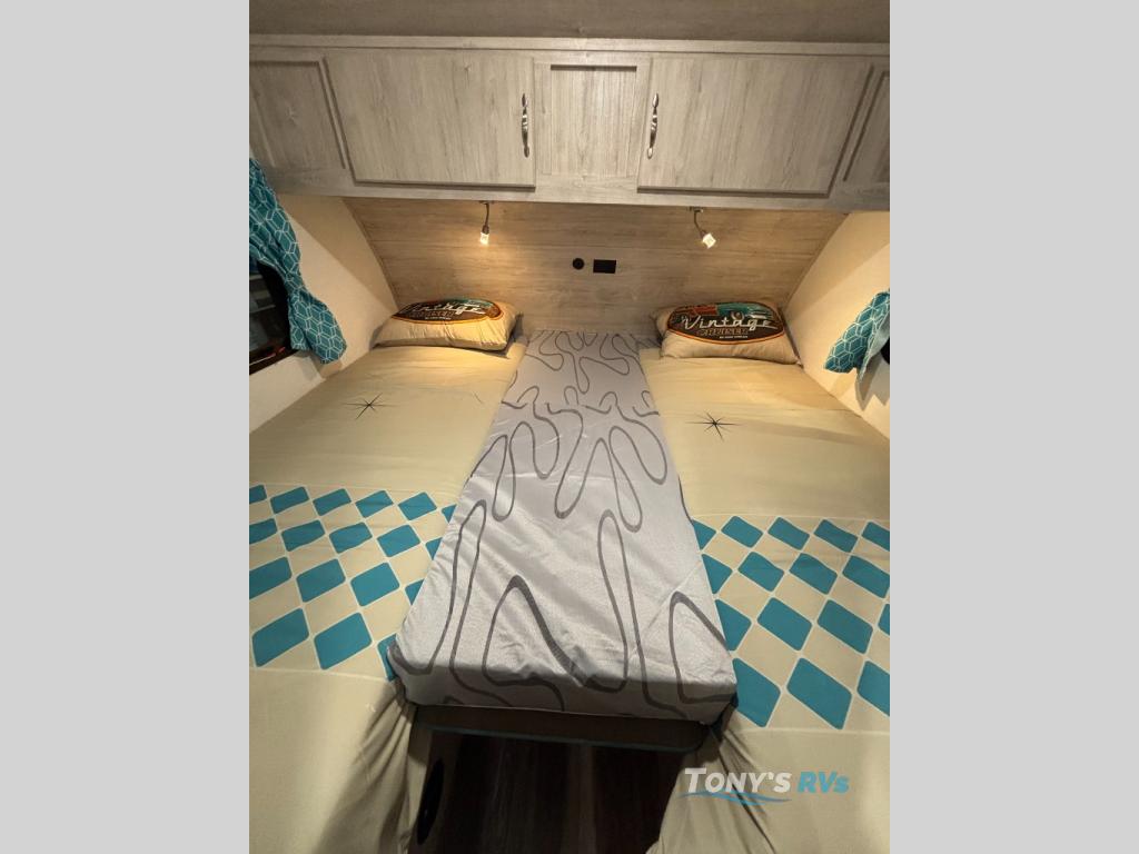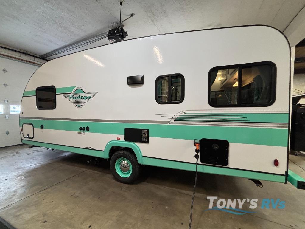 With any Vintage Cruiser by Gulf Stream you will be taken back to the fun of the 50's with vintage exterior graphics and classic interiors. Each model is constructed with a six-sided welded aluminum frame, vacuum bonded sidewalls with Azdel, and a vintage painted bumper you are sure to love. The Vintage Cruiser travel trailers include high-performance vinyl flooring, LED interior ceiling lights, a seamless tub/shower surround, and vintage flat cabinet doors to name a few comforts you'll find throughout. Some of the stand-out features found within the Vintage Package include a tankless water heater, a 100W roof-mounted solar panel with a controller, Goodyear Endurance tires, and more!