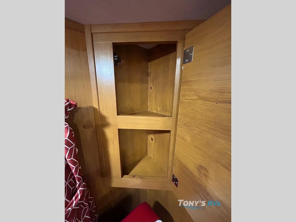Step into comfort with this classic travel trailer in tow. You will find a rear vintage booth dinette and a sofa slide out with end tables to set your drinks on. The kitchen is complete with a microwave oven, cooktop, plus overhead cabinets for your belongings. After a day outdoors, you can clean up in the 24" x 36" shower, and there is a private toilet and sink across the hall if someone needs to use it while you're cleaning up. This model will feel just like home with its RV queen bed and dual shirt closets for your clothes.