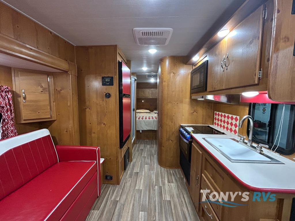 With any Vintage Cruiser by Gulf Stream you will be taken back to the fun of the 50's with vintage exterior graphics and classic interiors. Each model is constructed with a six-sided welded aluminum frame, vacuum bonded sidewalls with Azdel, and a vintage painted bumper you are sure to love. The Vintage Cruiser travel trailers include high-performance vinyl flooring, LED interior ceiling lights, a seamless tub/shower surround, and vintage flat cabinet doors to name a few comforts you'll find throughout. Some of the stand-out features found within the Vintage Package include a tankless water heater, a 100W roof-mounted solar panel with a controller, Goodyear Endurance tires, and more!