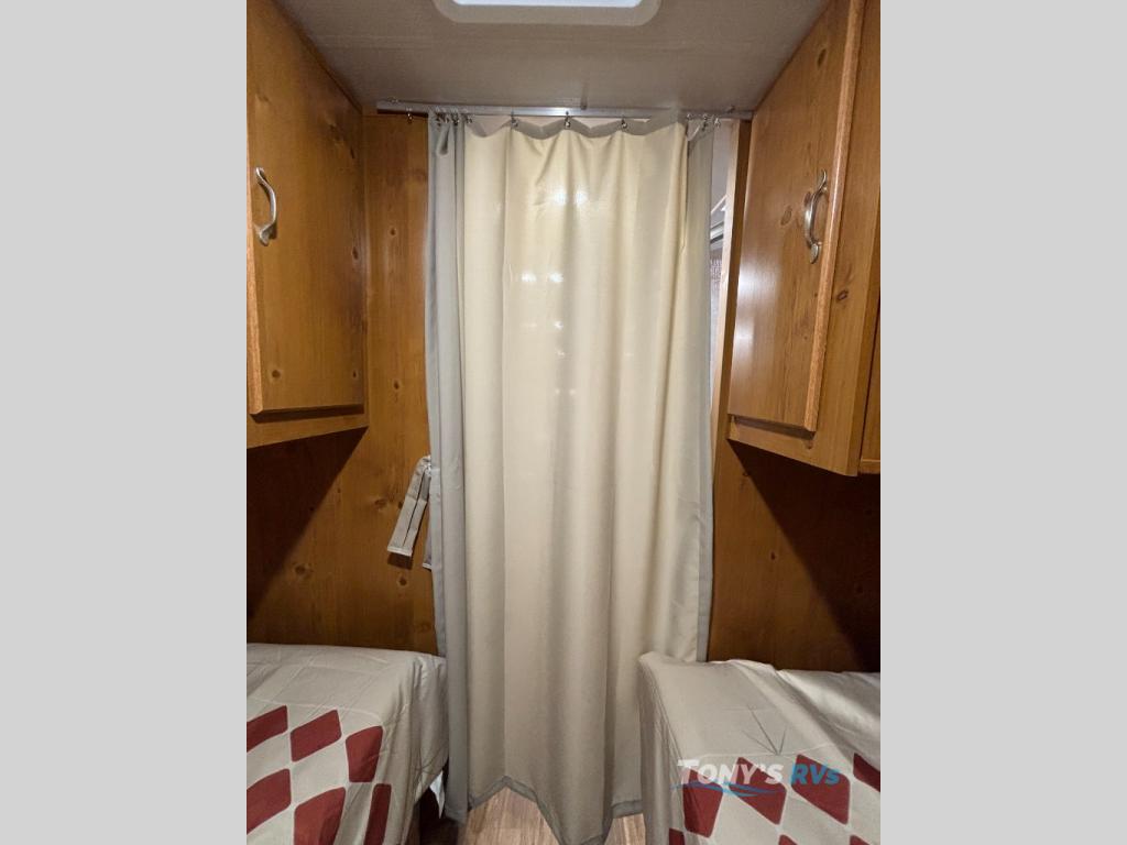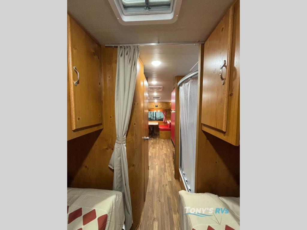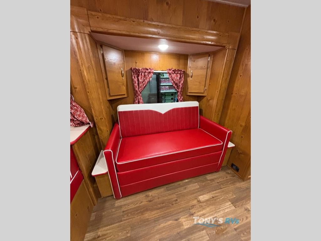 Step into comfort with this classic travel trailer in tow. You will find a rear vintage booth dinette and a sofa slide out with end tables to set your drinks on. The kitchen is complete with a microwave oven, cooktop, plus overhead cabinets for your belongings. After a day outdoors, you can clean up in the 24" x 36" shower, and there is a private toilet and sink across the hall if someone needs to use it while you're cleaning up. In the front bedroom you'll find twin beds with an insert to convert them into a king-size bed, plus dual shirt closets. How convenient!