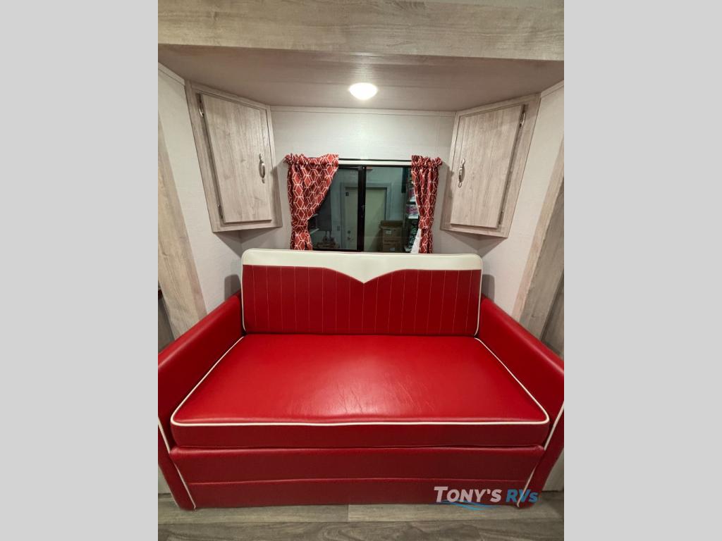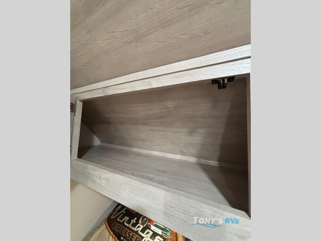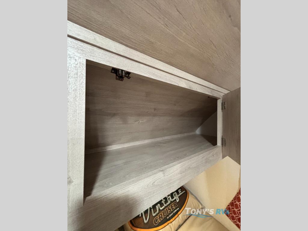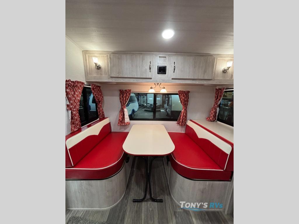 With any Vintage Cruiser by Gulf Stream you will be taken back to the fun of the 50's with vintage exterior graphics and classic interiors. Each model is constructed with a six-sided welded aluminum frame, vacuum bonded sidewalls with Azdel, and a vintage painted bumper you are sure to love. The Vintage Cruiser travel trailers include high-performance vinyl flooring, LED interior ceiling lights, a seamless tub/shower surround, and vintage flat cabinet doors to name a few comforts you'll find throughout. Some of the stand-out features found within the Vintage Package include a tankless water heater, a 100W roof-mounted solar panel with a controller, Goodyear Endurance tires, and more!