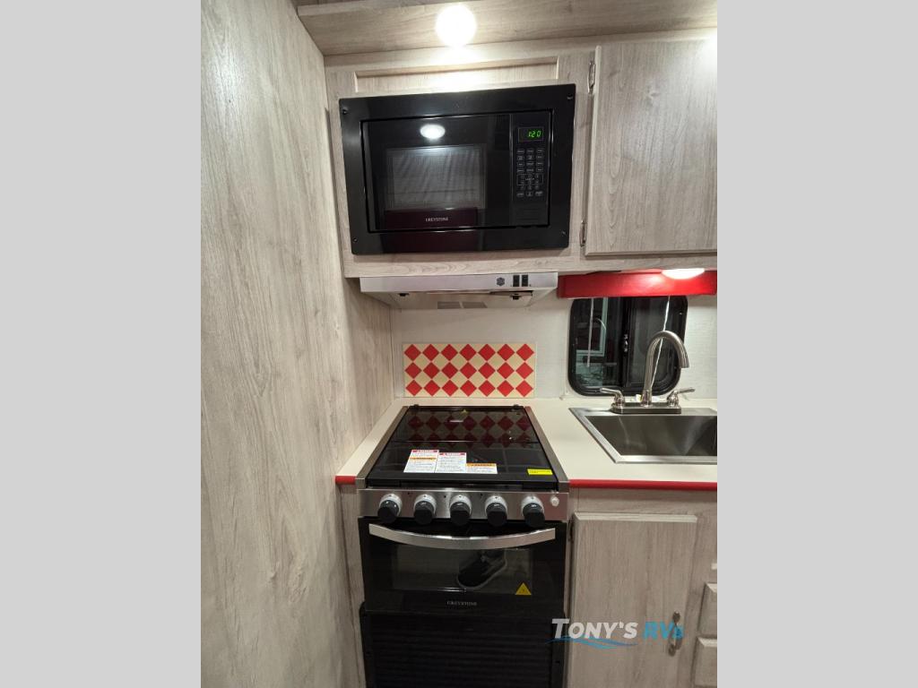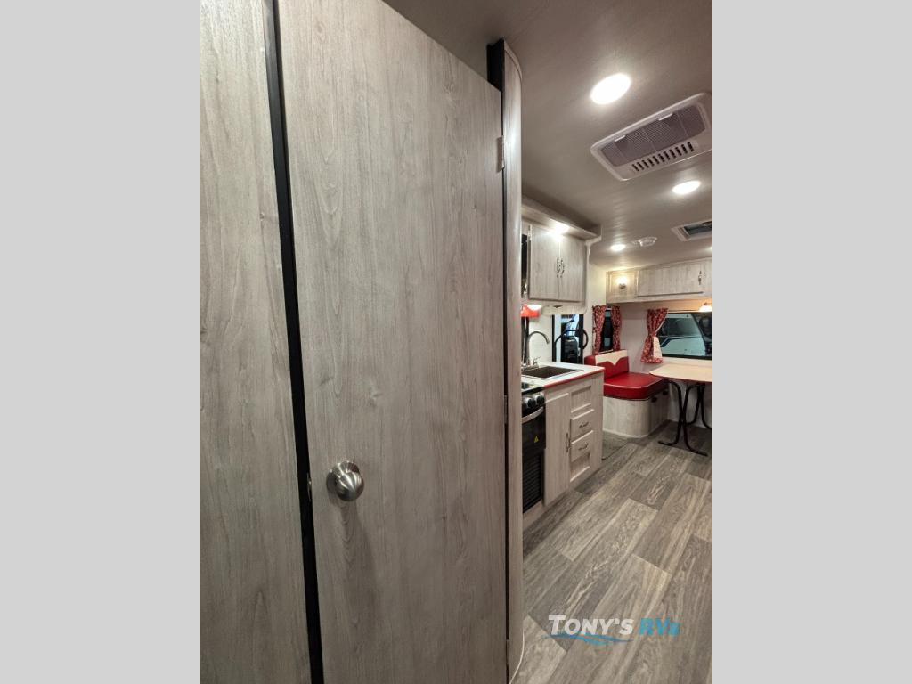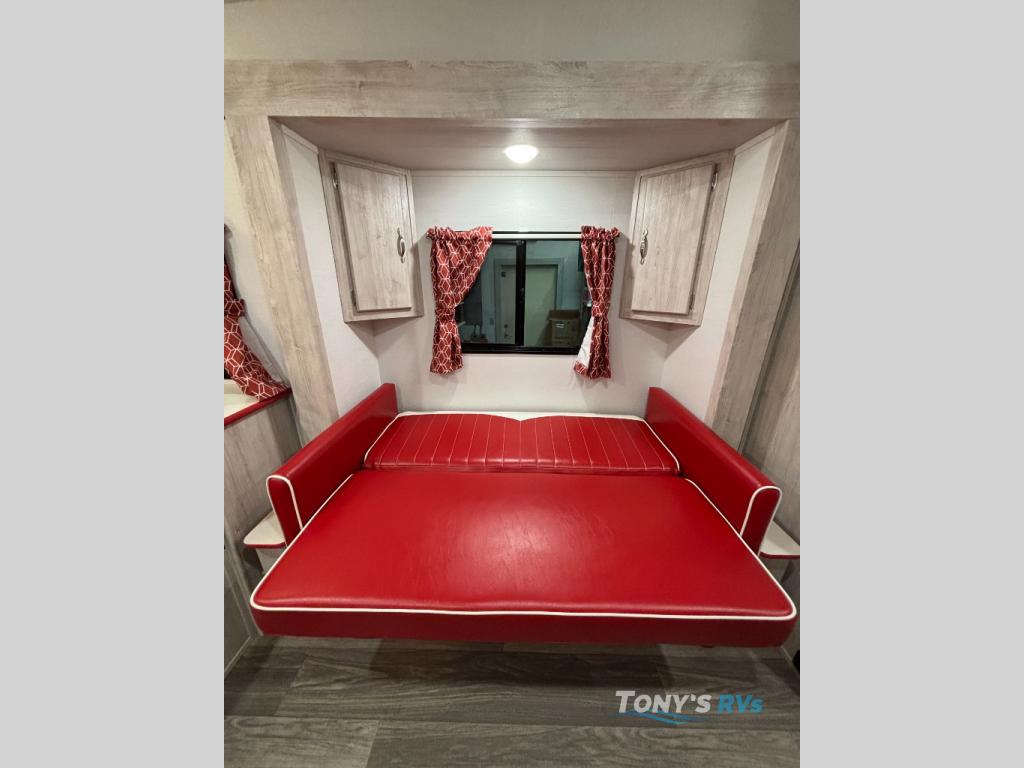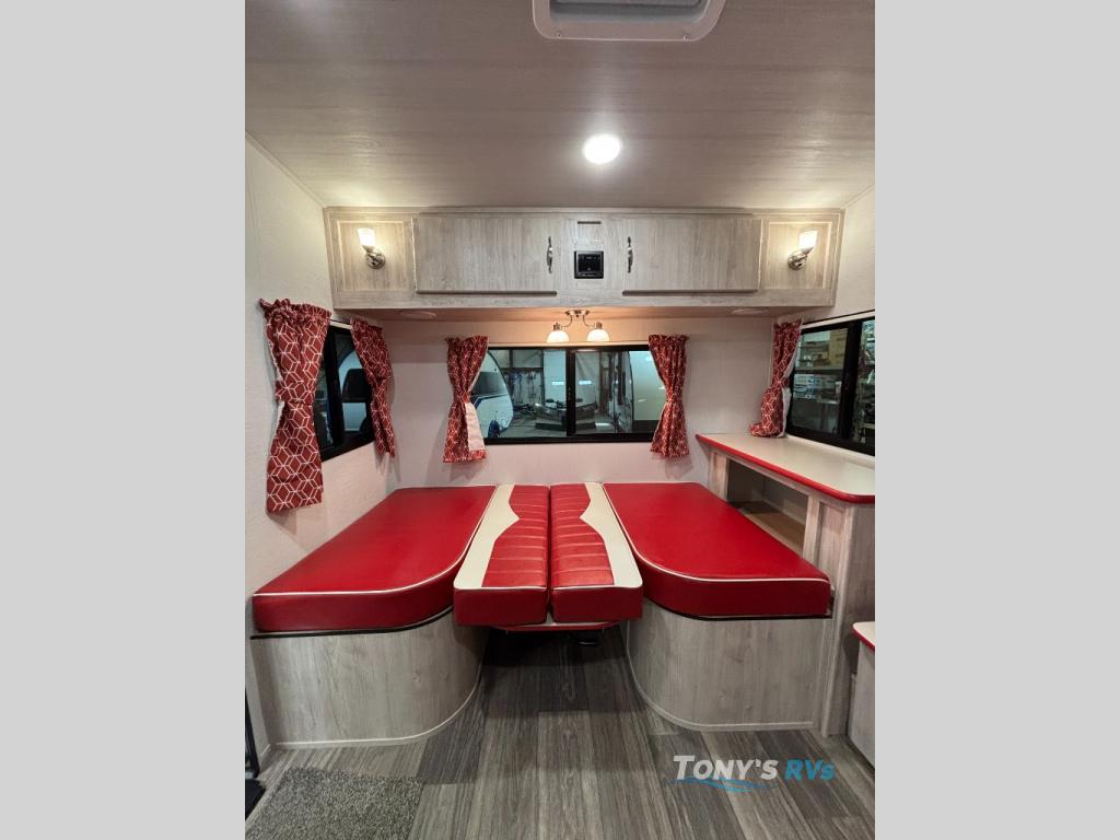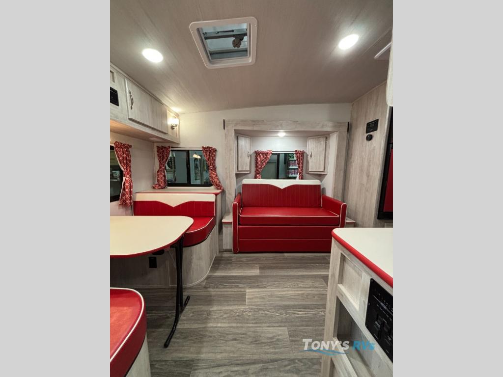 With any Vintage Cruiser by Gulf Stream you will be taken back to the fun of the 50's with vintage exterior graphics and classic interiors. Each model is constructed with a six-sided welded aluminum frame, vacuum bonded sidewalls with Azdel, and a vintage painted bumper you are sure to love. The Vintage Cruiser travel trailers include high-performance vinyl flooring, LED interior ceiling lights, a seamless tub/shower surround, and vintage flat cabinet doors to name a few comforts you'll find throughout. Some of the stand-out features found within the Vintage Package include a tankless water heater, a 100W roof-mounted solar panel with a controller, Goodyear Endurance tires, and more!