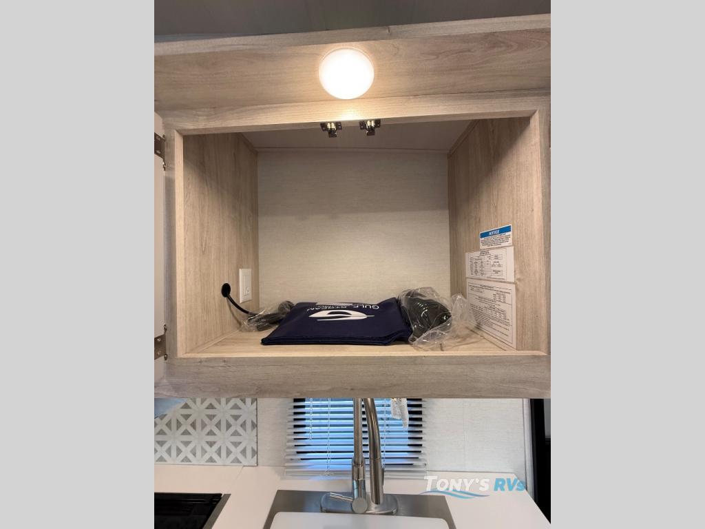 With any Vista Cruiser by Gulf Stream, you will enjoy premium quality in a compact and easy to tow travel trailer. The one-piece fiberglass roof, welded aluminum frame, and vacuum-bonded sidewalls with a composite barrier layer will create a strong and durable foundation to your RV. There are also LED running lights, along with an outside spray port, an electric awning, and a power tongue jack for easy set up. A home theater stereo with Bluetooth and speakers will allow you to listen to your favorite tunes, and there are interior and exterior TV mounting brackets if you decide to bring along a television. More interior features include "Opulence River Rock" wall vinyl, designer window treatments and night shades, tile backsplash at the range, and a premium foam mattress for your comfort.