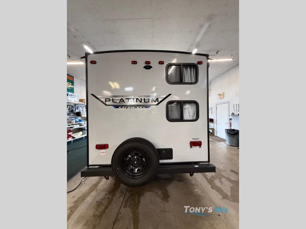 You will experience an easy-to-tow, lightweight, fully featured toy hauler or travel trailer with a Forest River Salem FSX! Each model is perfect for a first-time camper or an experienced one, and they offer a modern residential living space for a home-away-from-home experience. The Tuffcoat scratch-resistant exterior paint and diamond plate front rock guard will not only turn heads down the road, but also protect your unit for years to come. New to 2021 is Herringbone ultra-durable Congoleum floors that are easy to clean, AccessiBelly enclosed underbelly panels to better protect your unit from the elements, an additional 5.5 sq. ft. of countertop space, and a dual group 24 battery tray. These Platinum Edition models come with a fiberglass exterior with chrome wheel caps and lug nuts, and they add approximately 150 pounds of dry weight for single axels and 300 pounds for toy haulers. Come see what model suits you best today!